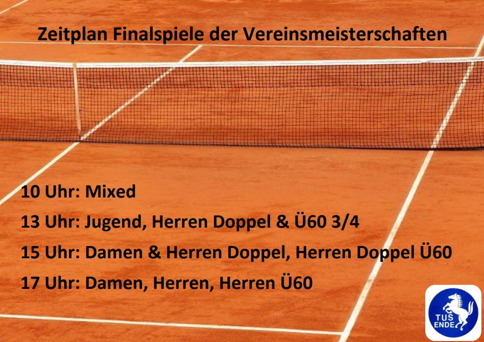 Meldet euch noch heute entweder am Platz oder per Mail an tennis@tusende.de für die Vereinsmeisterschaften an.